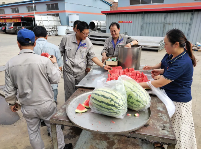 花生機(jī)械和堅(jiān)果炒貨設(shè)備近日,為進(jìn)一步做好暑期防暑降溫安全生產(chǎn)工作,公司工會(huì)以“情系一線職工”為主題,開展了“平安度夏送清涼”活動(dòng),為一線員工購(gòu)買了西瓜、冷飲,并準(zhǔn)備了綠豆湯。
